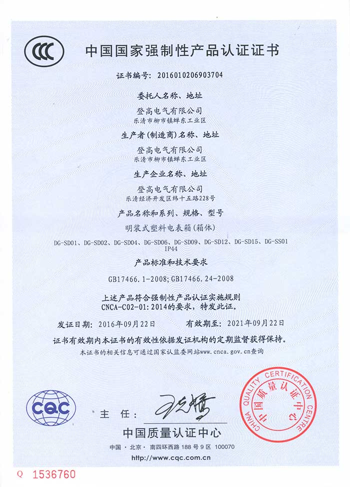 塑料表箱箱体 3C证书